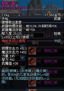 Lv55以上可以使用 物理攻击力:+400 魔法攻击力:+453 力量:+43 抗魔值:+38 物理暴击+3% 命中率+1% 物理、魔法伤害增加5% [弹药主宰]技能射程 +5% [弹药主宰]的附加发射几率 +10%