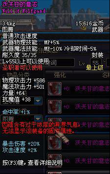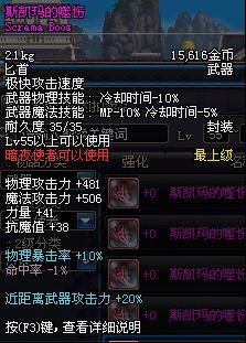 Lv55以上可以使用 物理攻击640+ 魔法攻击480+ 力量44+ 攻击速度+3% 近战攻击+20%