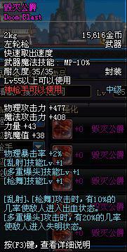 Lv55以上可以使用 物理攻击561+ 魔法攻击610+ 智力40+ 攻击时,有5%的几率发射炸弹。 近距离武器攻击力+10%