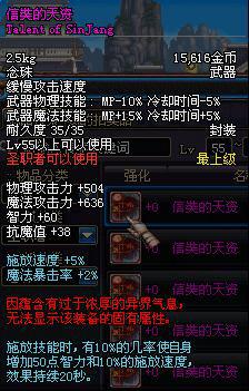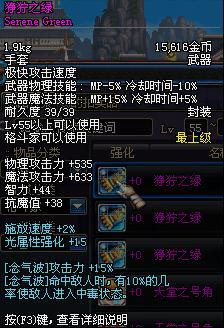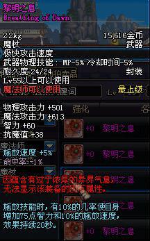 Lv55以上可以使用 物理攻击485+ 魔法攻击590+ 智力60+ 释放速度+5% 施放技能时,有10%的几率增加10%的释放速度,50智力,持续20秒 |